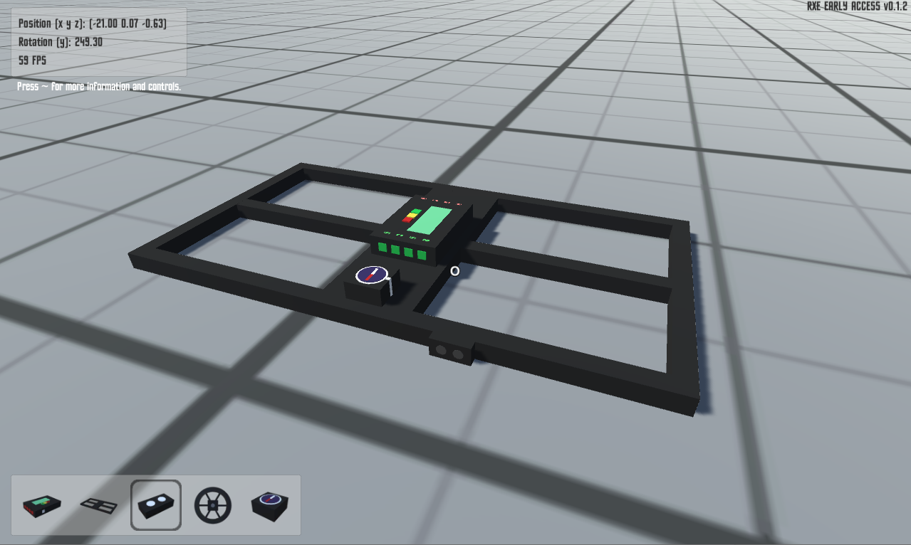 The second of these games, RXE, had a 3D building system that allowed you to "snap" parts together. Here's an example of three parts attached to a "chassis":